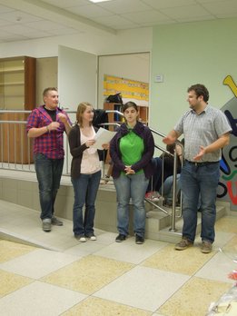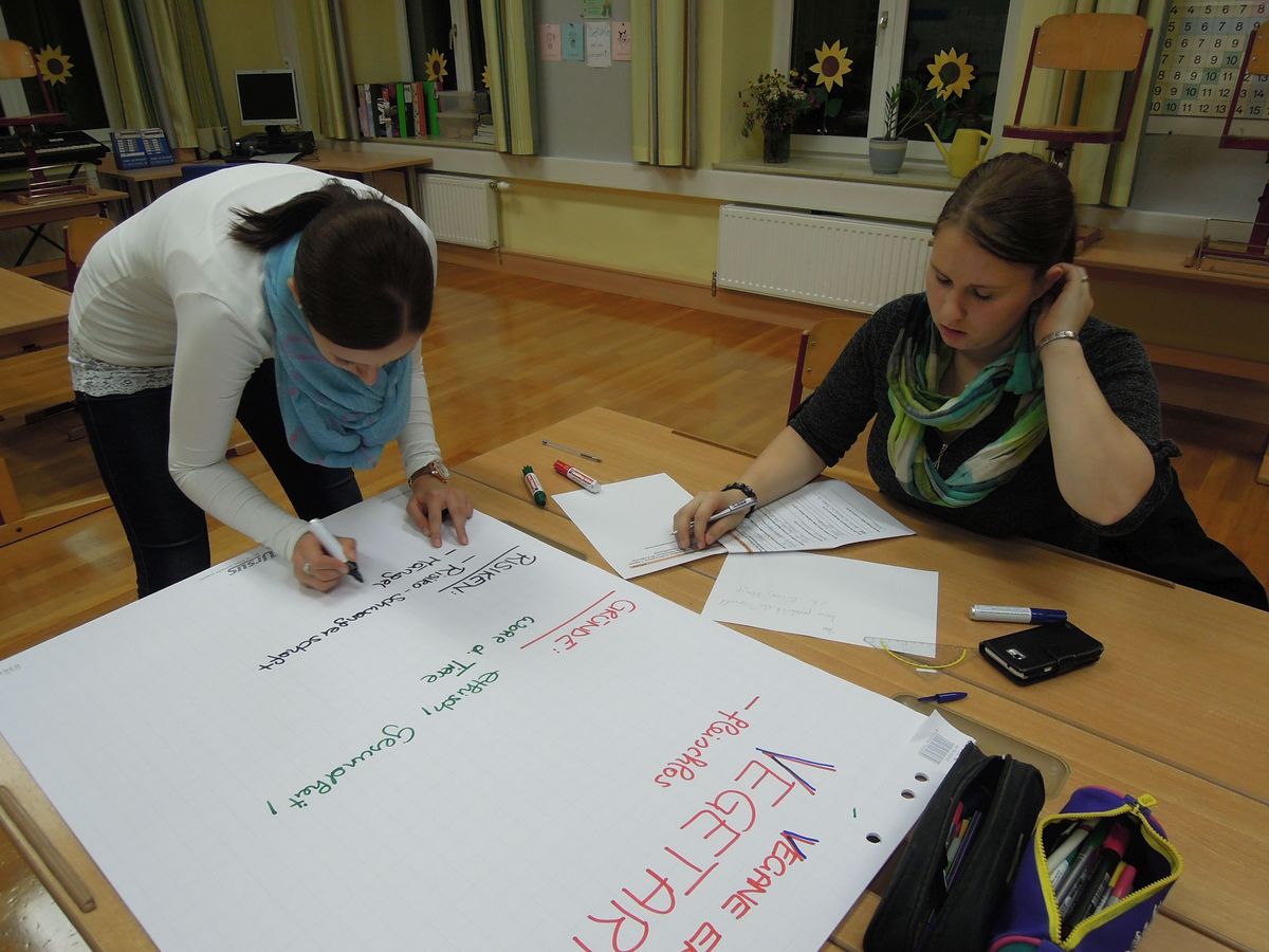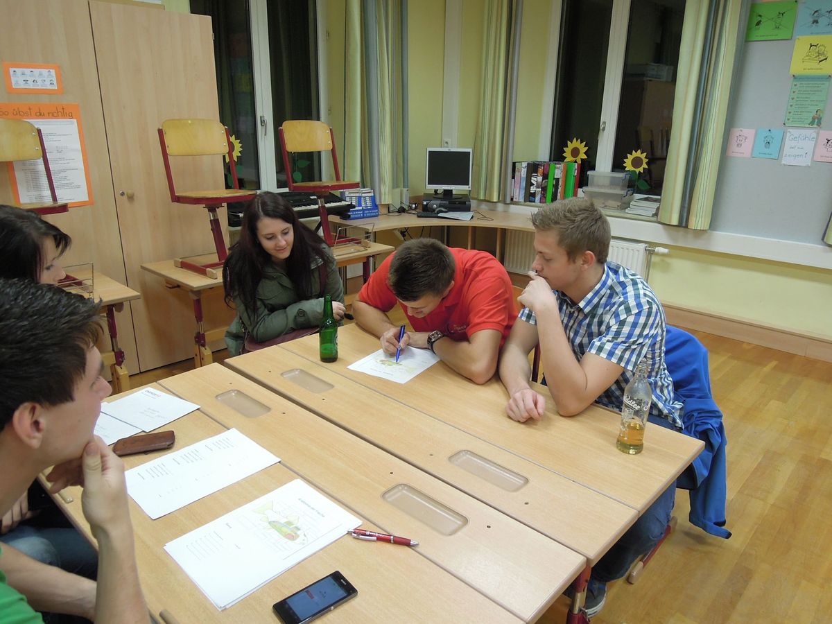 Die Genussolympiade wurde, wie die Agrarolympiade, von fünf Teams bestritten. Beim diesjährigen Bezirksentscheid stellten wir unter anderen Fragen zu Obst und Gemüse, Kräuter sowie Fisch. Die Genussteilnehmer hatten bei der Station „Ernährung“ die Aufgabe die Ernährungspyramide sowie Informationen über eine alternative Ernährungsform auf Papier bzw. Plakat zu bringen. Außerdem war die Erkennung von Fleischteilen zu bewältigen. Bei der Station "Erwecke deine Sinne" waren die Hauptthemen Most und Wein.