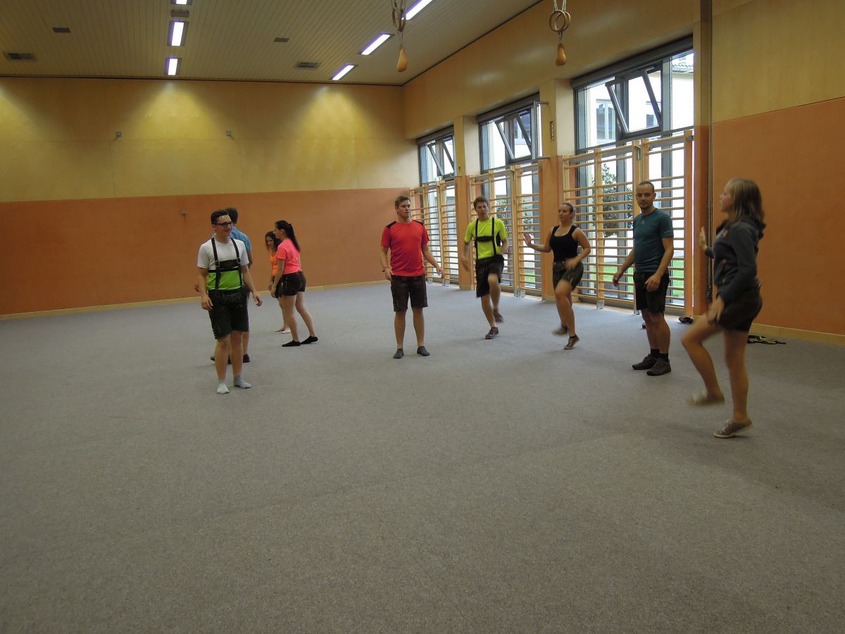 Das Kursangebot bei diesem einmaligen Projekt setzt sich aus zwei Plattlerkursen (Anfänger und Fortgeschrittene) zusammen. Am Samstagnachmittag pausierten die Kurse, sodass die TeilnehmerInnen auch noch einen weiteren Bereich der Volkskultur kennen lernen konnten. Angeboten wurde das Modul „Gstanzl singen“, wo die TeilnehmerInnen erste Erfahrungen im Gstanzl dichten sammeln konnten.