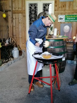 Nach einigen Infos zur Straußenhaltung und einer kleinen Führung durften wir noch ein paar Köstlichkeiten vom Strauß verkosten wie z. B. eine Straußeneierspeis und Eierlikör.