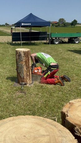 Der Bewerb bestand aus 7 Stationen: Fallkerb- & Fällschnitt, Kettenwechsel, Kombinationsschnitt, Präzisionsschnitt, Durchhacken, Geschicklichkeitsschneiden und der finale Bewerb, das Entasten.