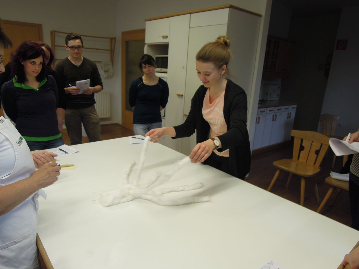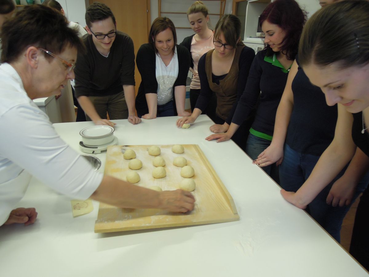 Genau passend zu dieser Jahreszeit und kurz vor Ostern luden wir unsre Mitglieder zu unsrem Backkurs „Gebildbrote und Brauchtumsgebäck“ ein. Am 5. April trafen wir uns auf der BBK in Steyr und waren schon ganz gespannt, was auf uns zukommen wird. Die Seminarbäuerin Emilie Staudinger, die uns auch schon bei anderen Kursen begleitete, zeigte uns auch an diesem Tag wieder viele Tipps und Tricks in der Backstube, unter anderem die richtige Zubereitung, aber auch die richtige Verarbeitung eines Germteiges. Im Vordergrund standen jedoch die handgeformten Gebildbrote und das Brauchtumsgebäck. Wir durften verschiedenste Formen selbst ausprobieren und kennenlernen. Der Vierstrangszopf, ein sitzendes Häschen, ein Osternest und ein Mohnweckerl wurden von jedem Teilnehmer zubereitet. Natürlich wurden uns noch viele weitere Formen und bildhafte Gestalten gezeigt. Nach getaner Arbeit räumten wir die Küche zusammen und kosteten unsre selbstgemachten Leckereien. Mit einem vollen Magen ging es dann auch schon wieder nach Hause. Nach diesem Kurs konnten wir genug Wissen mitnehmen, um Gebildbrote und Brauchtumsgebäck selber zu backen. Danke an alle Teilnehmer/innen für den lustigen und interessanten Abend. Wir freuen uns jetzt schon auf den Grillkurs am 20. Mai 2017!