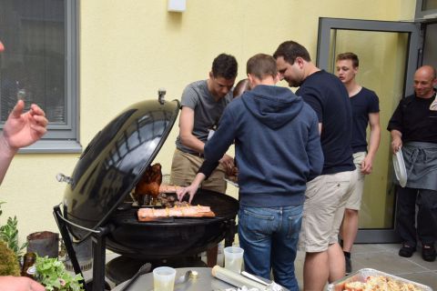 Um mit den richtigen Tipps und Tricks in die Grillsaison zu starten, wurde ein passender Kurs dazu organisiert. Der Startschuss fiel um 9 Uhr, wo alle Teilnehmer eintrafen. Gleich darauf wurden mit den Vorbereitungen begonnen. Auf der Menükarte stand · Ripperl · Bierhuhn · Steak · Lachs · Bratwurstbaguette · Salat · Kartoffelgratin · für den Nachtisch Schokobananen
