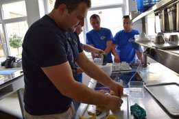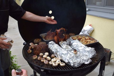 · Es wurden alle Zubereitungen der Speisen vorgezeigt und die Teilnehmer in Gruppen eingeteilt. Nachdem alles zubereitet war, würden die Gerichte auf den Grill gegeben. Natürlich durfte die richtige Methodik beim Grillen nicht fehlen. Nach getaner Arbeit begaben sich alle zu Tisch und die köstlichen Gerichte wurden verzehrt. Mit vollgeschlagen Mägen und tollen Tipps für die nächste Grillerei im Gepäck ging es dann wieder ab nach Hause.