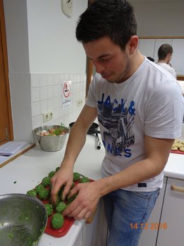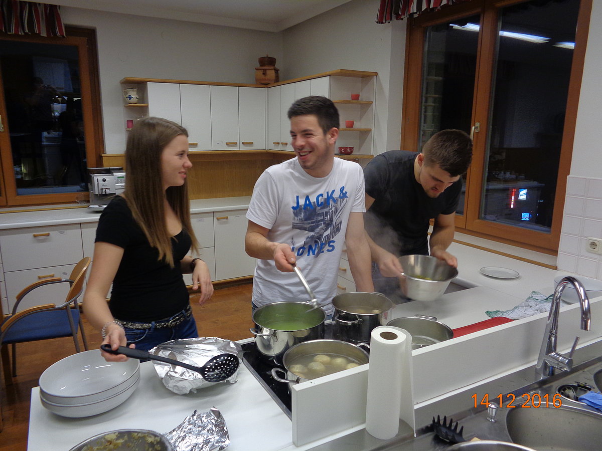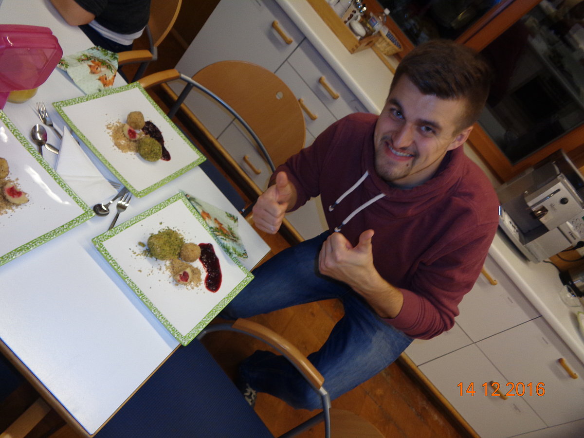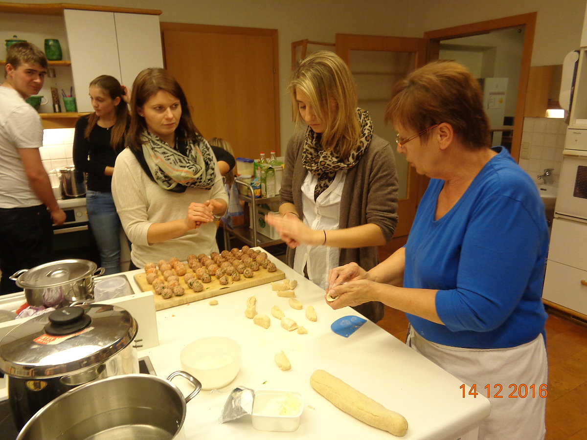 Am. 14 .Dezember fand auf der BBK in Steyr der 1. Kurs von unserem Bildungsprogramm statt. An diesem Abend drehte sich alles rund um die Vielfalt der raffinierten Knödelküche. Die Seminarbäuerin Emilie Staudinger aus Großraming zeigte uns zahlreiche Tipps und Tricks über die verschiedensten Knödelarten. Jeder durfte selbst mitanpacken und in 2er Teams bereiteten wir viele pikante und süße Knödelarten zu. Der Spaß kam natürlich auch nicht zu kurz und nach 2 h Kochzeit haben wir (fast) alle Knödel verkostet. Alle Knödel schmeckten hervorragend und zu guter Letzt räumten wir noch alles zusammen. Mit vollen Mägen und zahlreichen Eindrücken war der Knödelkochkurs auch schon wieder zu Ende. Danke an alle Teilnehmer/innen – es war ein interessanter und lustiger Abend J Wir freuen uns schon jetzt auf den Brotbackkurs „Brauchtumsgebäck und Gebildbrote“ am 05. April 2017!