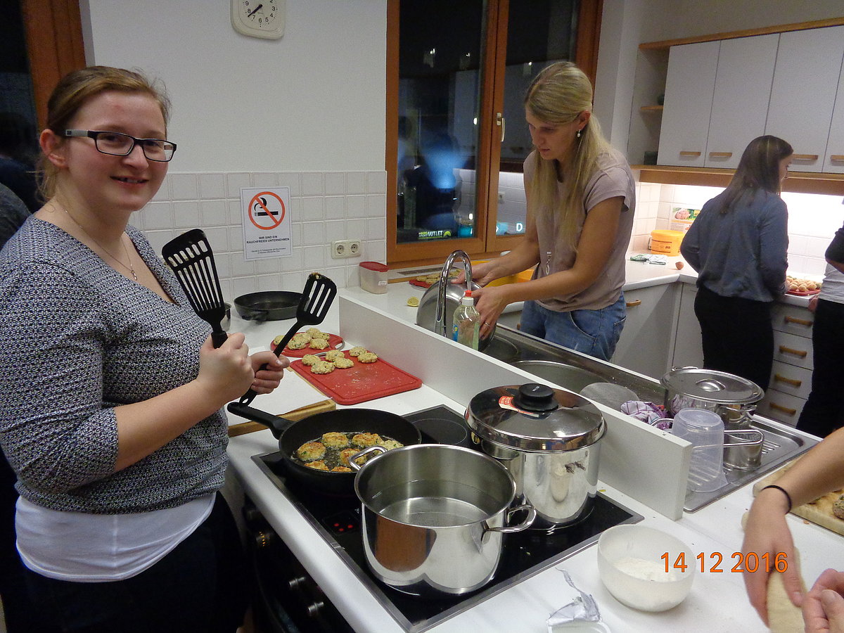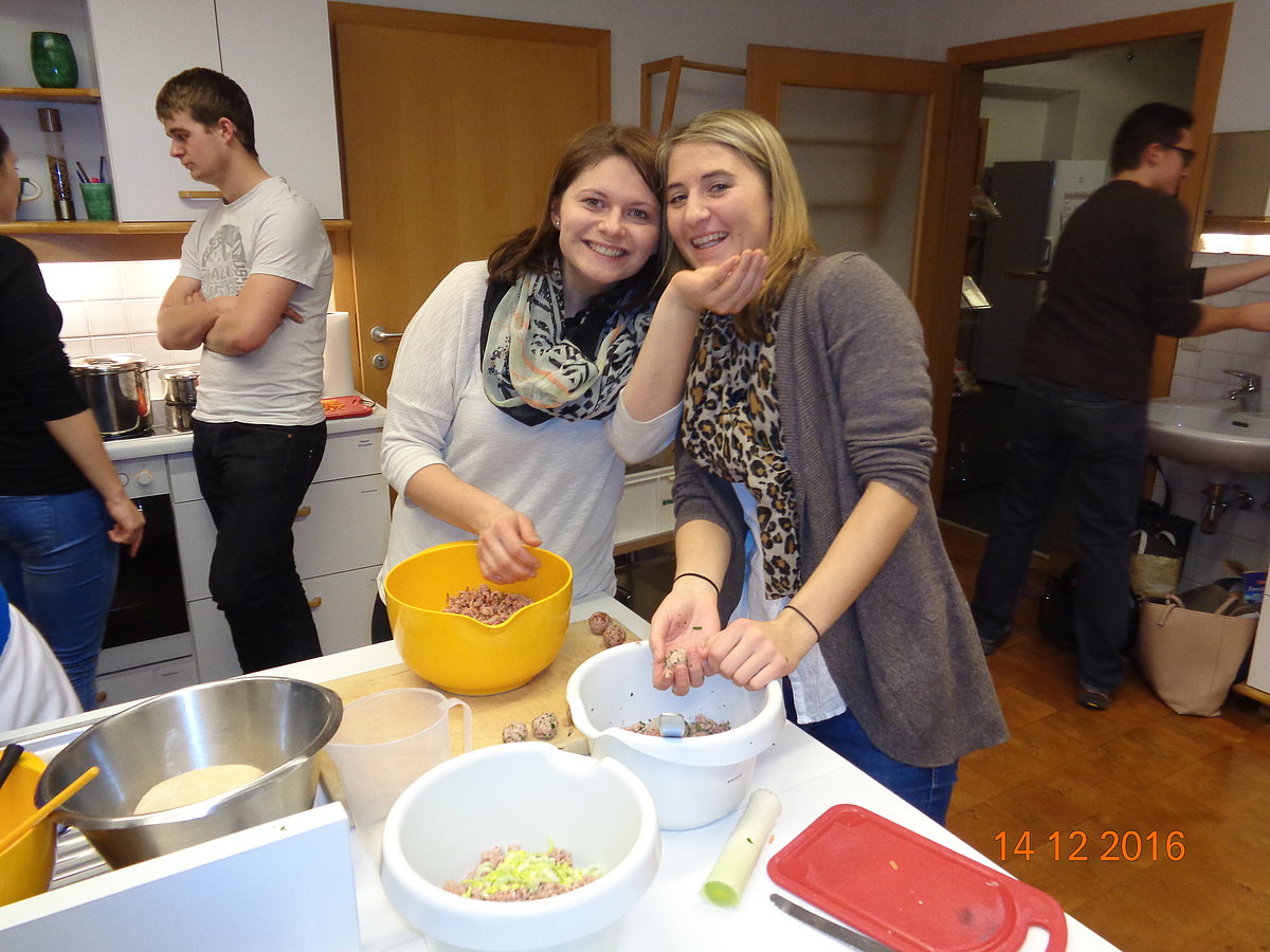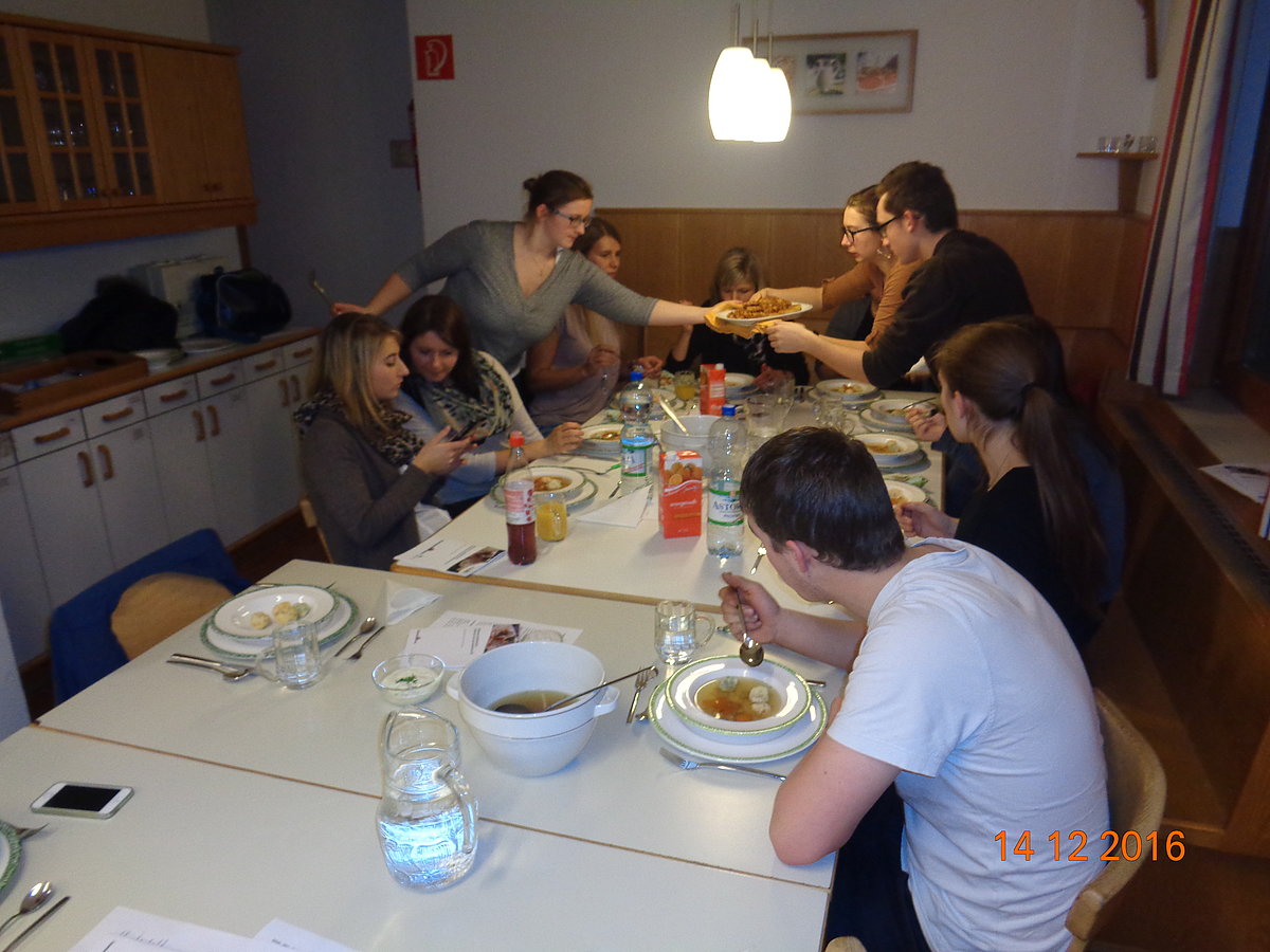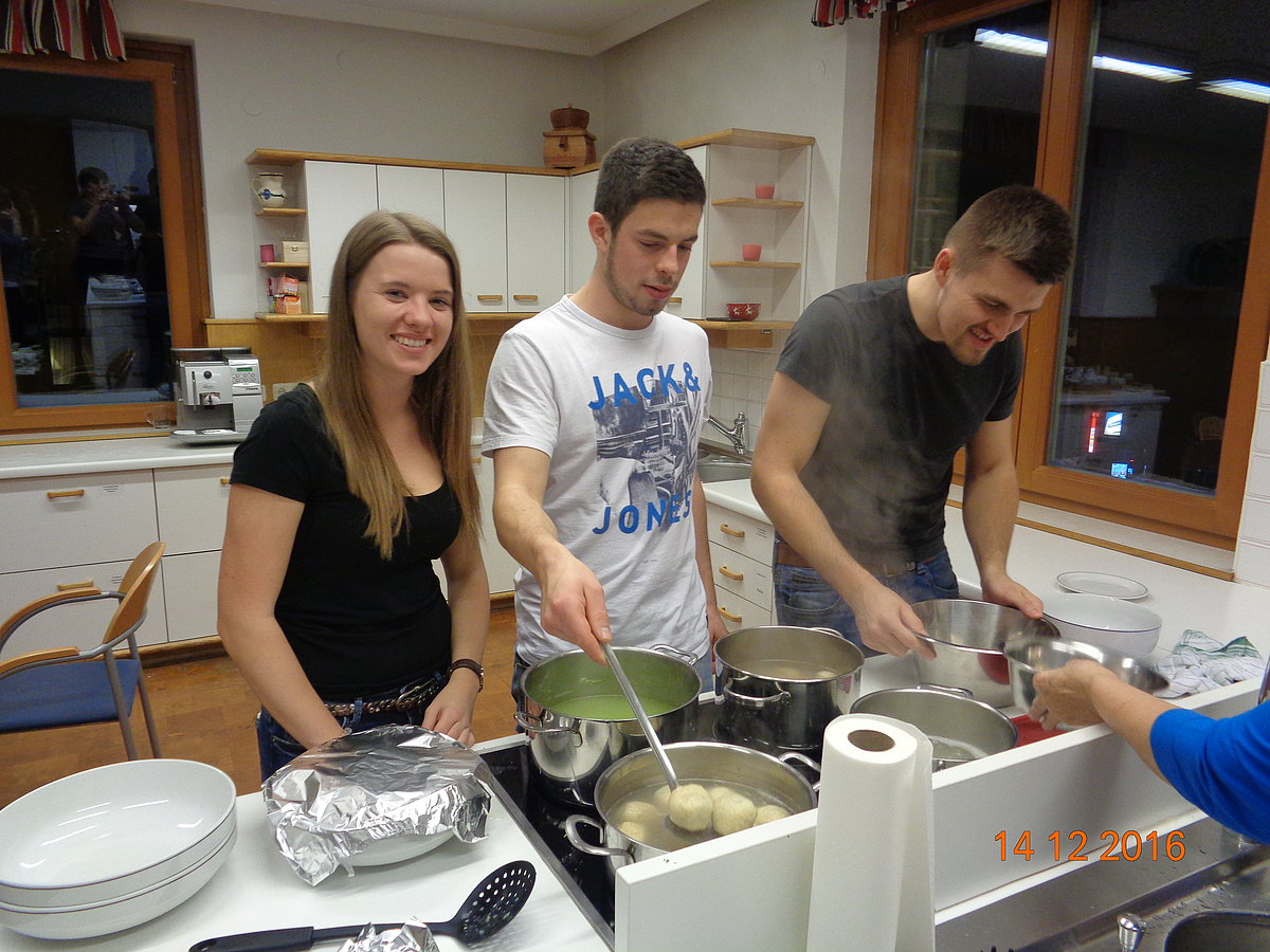 Am. 14 .Dezember fand auf der BBK in Steyr der 1. Kurs von unserem Bildungsprogramm statt. An diesem Abend drehte sich alles rund um die Vielfalt der raffinierten Knödelküche. Die Seminarbäuerin Emilie Staudinger aus Großraming zeigte uns zahlreiche Tipps und Tricks über die verschiedensten Knödelarten. Jeder durfte selbst mitanpacken und in 2er Teams bereiteten wir viele pikante und süße Knödelarten zu. Der Spaß kam natürlich auch nicht zu kurz und nach 2 h Kochzeit haben wir (fast) alle Knödel verkostet. Alle Knödel schmeckten hervorragend und zu guter Letzt räumten wir noch alles zusammen. Mit vollen Mägen und zahlreichen Eindrücken war der Knödelkochkurs auch schon wieder zu Ende. Danke an alle Teilnehmer/innen – es war ein interessanter und lustiger Abend J Wir freuen uns schon jetzt auf den Brotbackkurs „Brauchtumsgebäck und Gebildbrote“ am 05. April 2017!
