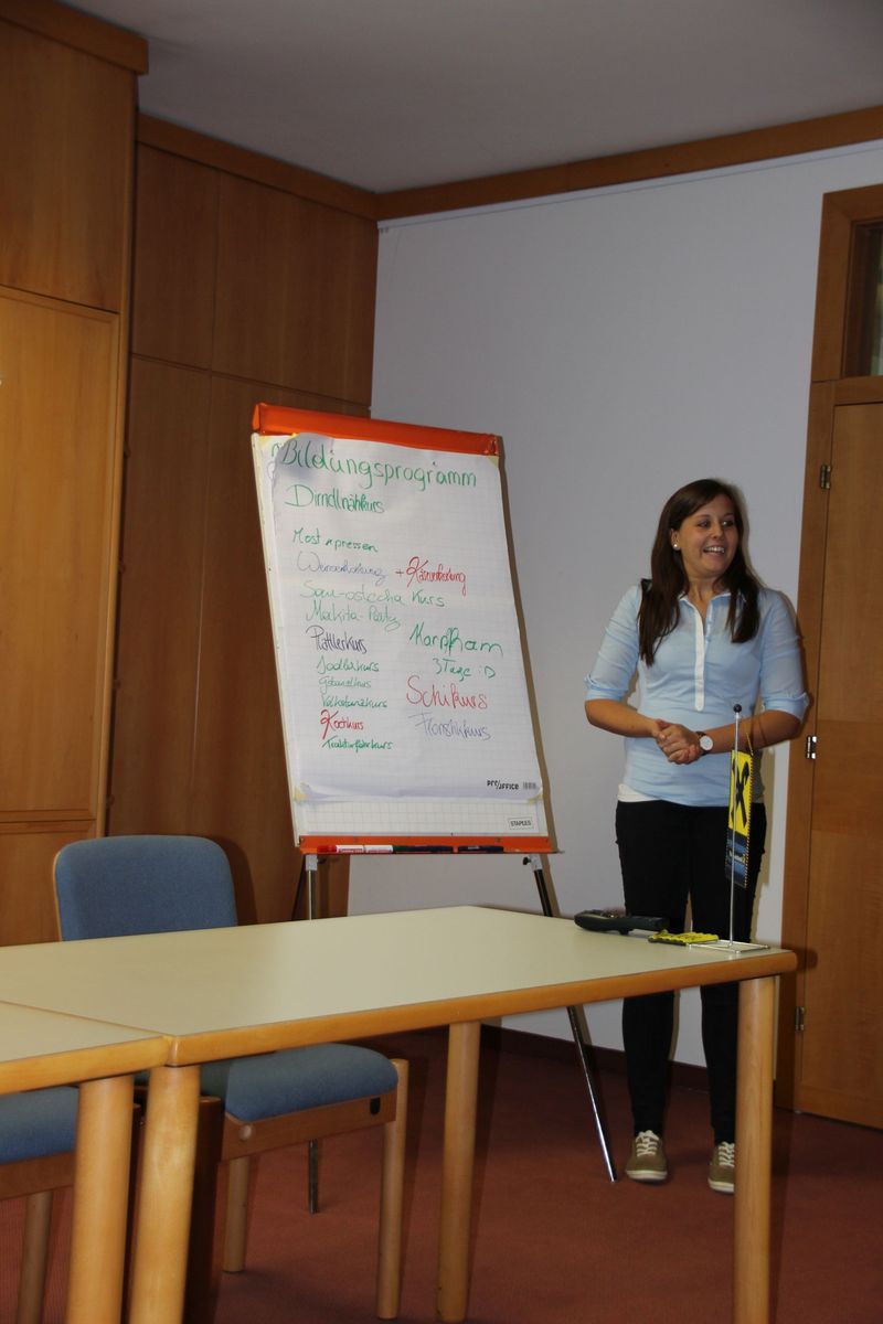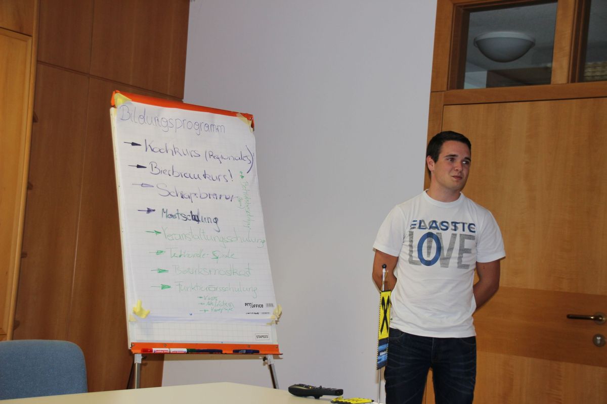 Nächstes Jahr wird es auch wieder einen Kochwettbewerb geben, der vom Bezirksvorstand organisiert wird sowie das Bezirkspflügen, das 2016 vom Bezirk Kirchdorf veranstaltet wird. Dem Bildungsprogramm schenken wir sehr viel Aufmerksamkeit und so war es uns ein Anliegen die Wünsche, Anregungen und Ideen an das Bildungsprogramm von den Landjugendmitgliedern in Erfahrung zu bringen. In 5 Gruppen wurden auf Plakaten Vorschläge für Bildungsveranstaltungen gesammelt und in weiterer Folge präsentiert. Den Punkt "Landjugend OÖ stellt sich vor" übernahm der Landesleiter, Johann Diwold. In einem Video wurden uns die vielfältigen Aktivitäten auf Landesebene näher gebracht und im Anschluss stellte er uns den Landesvorstand kurz vor. Zudem sprachen wir nochmals über das zweijährige Jahresthema "Zusammenhalten - Land gestalten!" - wir hoffen, dass im nächsten Jahr noch viele unserer Ortsgruppen ein Projekt dazu in Angriff nehmen.