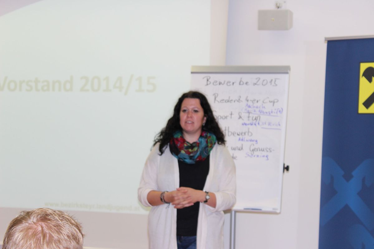 Beim Punkt "Bezirksvorstand 2014/15" wurden wir von Tina Mösenbichler als Moderatorin unterstützt. Vom Landesvorstand war Johann Diwald, der neue Landesleiter, bei der Sitzung mit dabei.